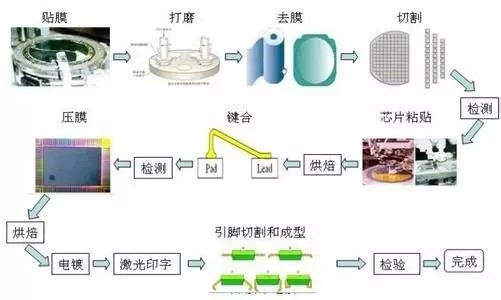 1、芯片封裝技術(shù)的基本工藝流程:硅片減薄、硅片切割、芯片貼裝、芯片互聯(lián)、成型技術(shù)、去飛邊毛刺、切筋成型、上焊錫打碼等工序