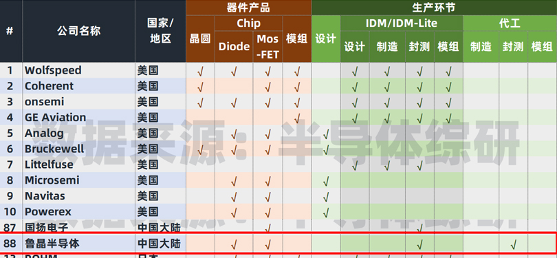 圖2全球SiC功率半導體廠(chǎng)商列表
