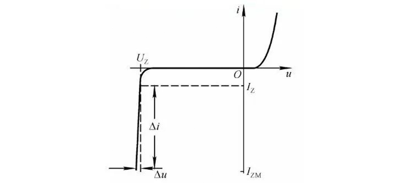 ③動(dòng)態(tài)電阻Rz:穩壓管在反向擊穿的曲線(xiàn)工作時(shí),電壓變化量△Uz與電流變化量△I之比稱(chēng)為動(dòng)態(tài)電阻,動(dòng)態(tài)電阻越小說(shuō)明穩壓性能越好;