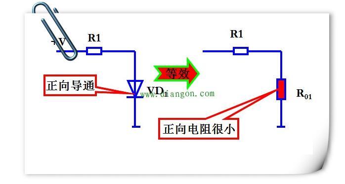 正向電阻是二極管正向導通后正——負極之間的電阻,這一電阻值很小。